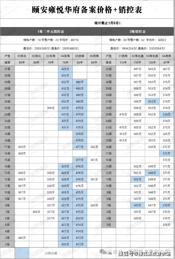 之前推出的1栋跟3栋房源基本已经售罄,下面小编还特意做了份颐安乐城2期1栋3单元以及2栋全套的备案价格,供大家参考。