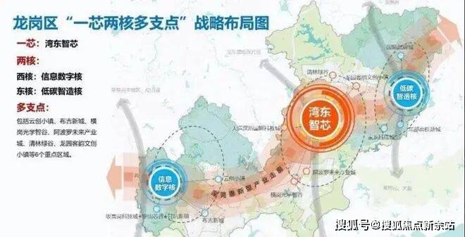 通过围绕“一芯”“两核”“多支点”主体功能布局。大运新城作为“一芯”的代表,位居“东进战略”最前沿,也是粤港澳大湾区经济腹地、辐射粤东北的“桥头堡” ,打造深圳都市圈的“东核心”。