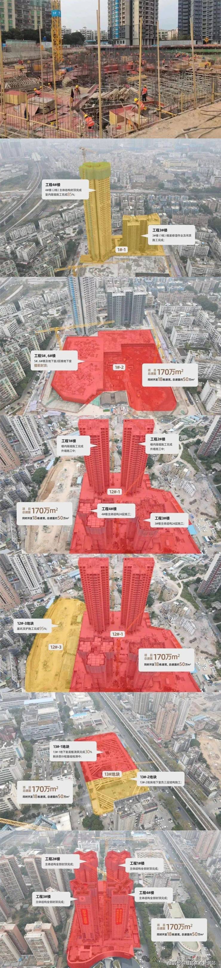 项目同时开发16栋建筑,总建筑面积约55万㎡,目前1#-1地块、1#-2地块、12#-1地块、13#地块、14#地块正在施工中。