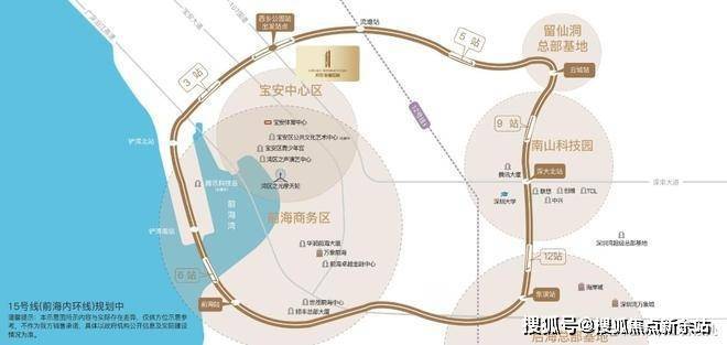 前海内环线,串联五大高新科技园区:地铁15号线作为深圳首条环线轨道,起终点均为前海站。通车后,极速串联前海-宝中、大铲湾腾讯科技岛(在建中)、南山科技园、后海总部基地、留仙洞总部基地等高端产业密集区。