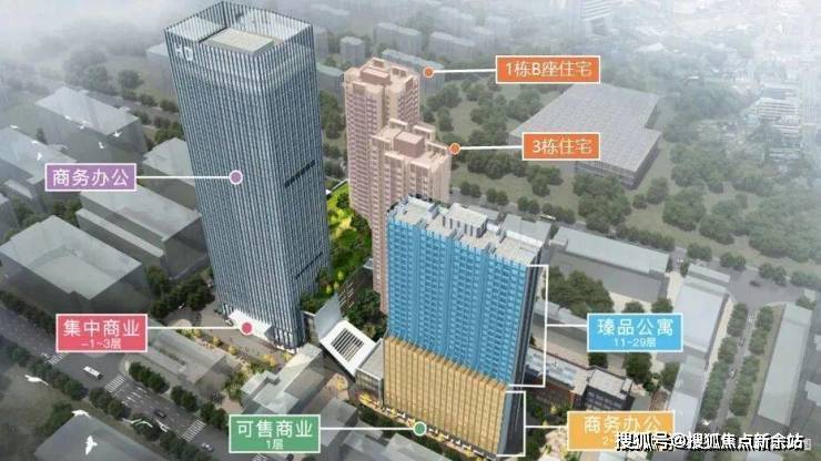 项目共打造5栋建筑,其中1栋A座为31层办公产品,1栋B座为31层住宅产品,2栋为29层商务公寓,3栋为32层住宅,4栋为3层幼儿园。