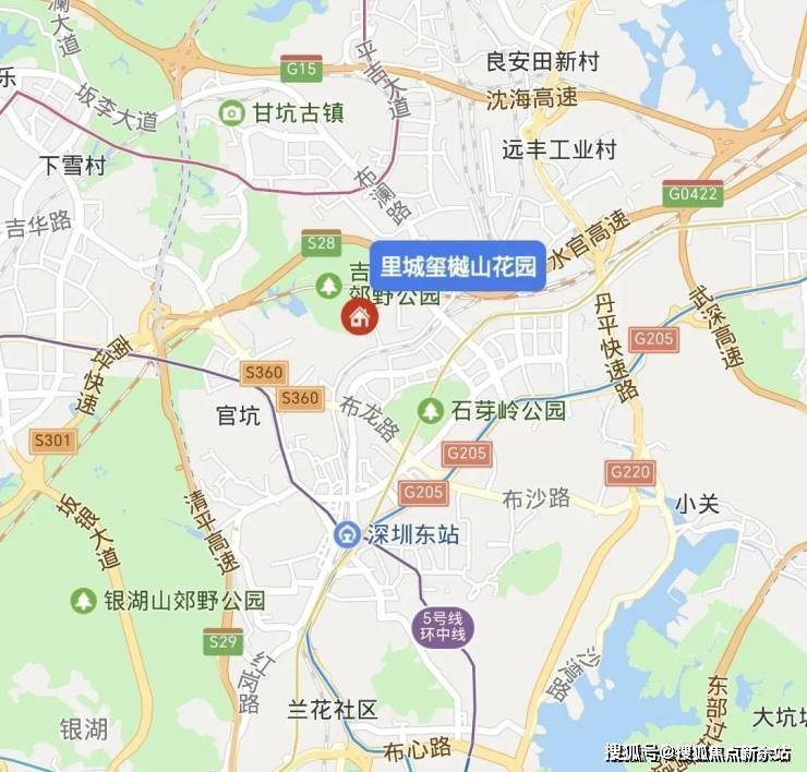 里城玺樾山,位于龙岗区吉华街道三联社区,项目背靠三联郊野公园,从大区位来看,北邻平湖,西邻坂田,南邻布吉中心区,东邻横岗片区。