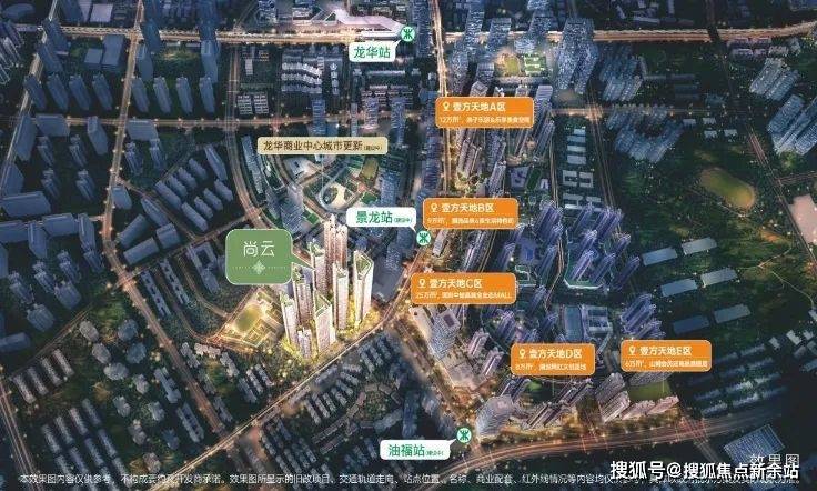 鸿荣源尚云2区项目占位龙华超级商圈核芯,壹方城旁,紧邻9年一贯制学校,以“城无界,自从容”为理念,打造集住宅、办公、商业于一体的高品质住区,位于龙华超级商圈壹方天地旁,距离地铁4号线龙华站约1.1公里,步行约15分钟,区域配套设施完善