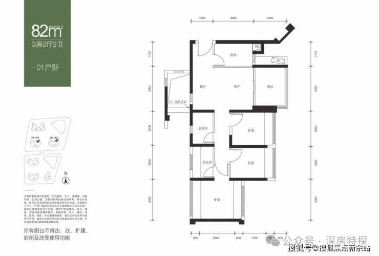【面积】:约82-89㎡3房2卫