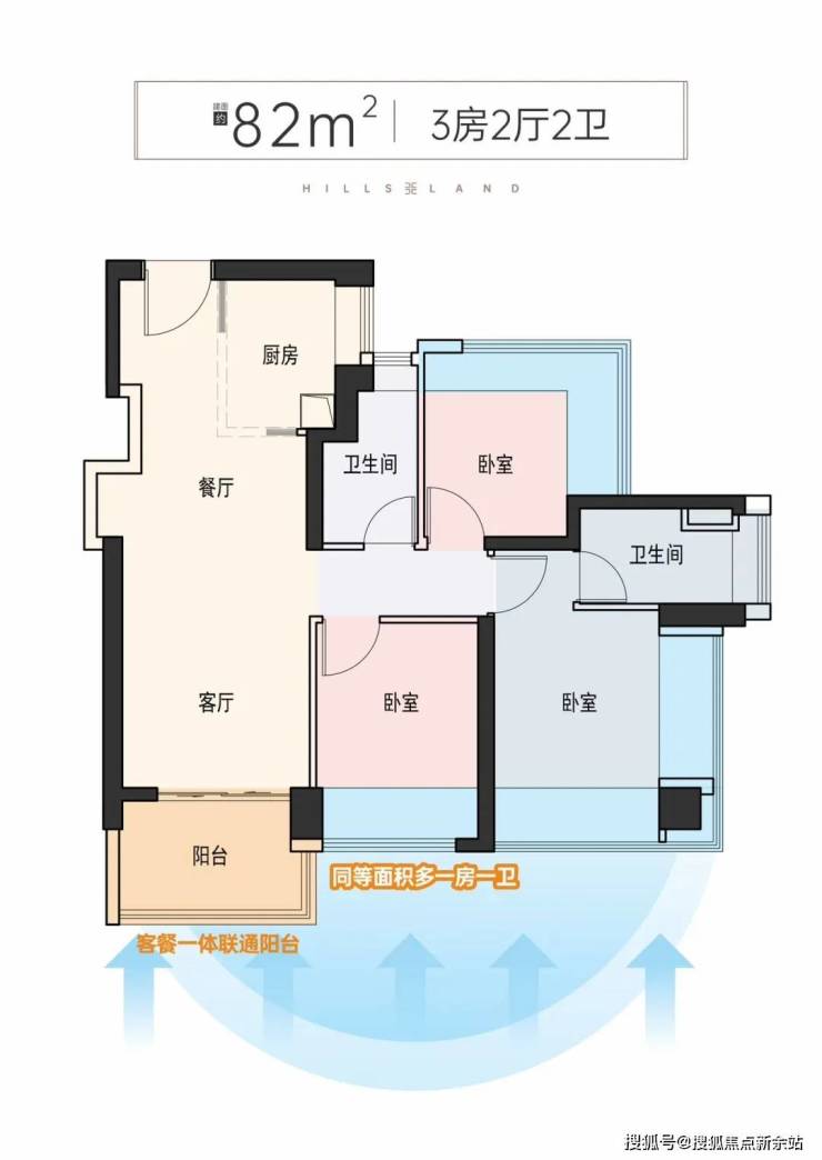 ● 75平3房2厅2卫:真正的同等面积多一间房,还多一间卫生间!