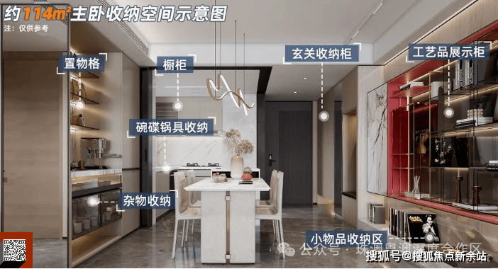 通过玄关、过道储物柜、无界中厨岛台、卫浴镜柜、情景阳台等收纳设计,实打实地增加家庭的收纳空间,细节满满。