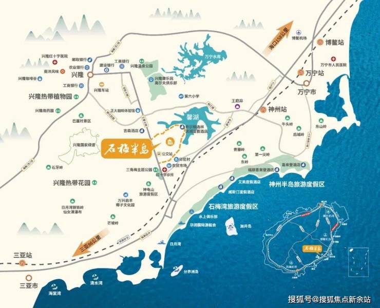 石梅半岛,坐落于兴隆旅游度假区馨湖畔,紧邻海南省级旅游度假区——石梅湾,以43万㎡低密湖岛大盘之姿,荟萃山林湖泉资源,集希尔顿酒店、度假洋房、亲湖别院、山林叠院、休闲配套于一体,为海南东部黄金海岸钜献诚意之作‼