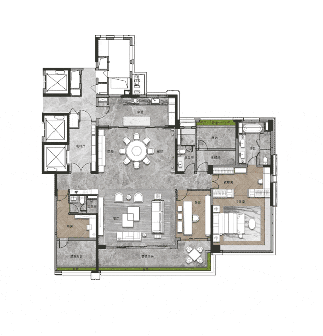 我们再来看看此次加推的268平的大面积户型,作为项目的旗舰,暗藏着哪些巧妙的设计?