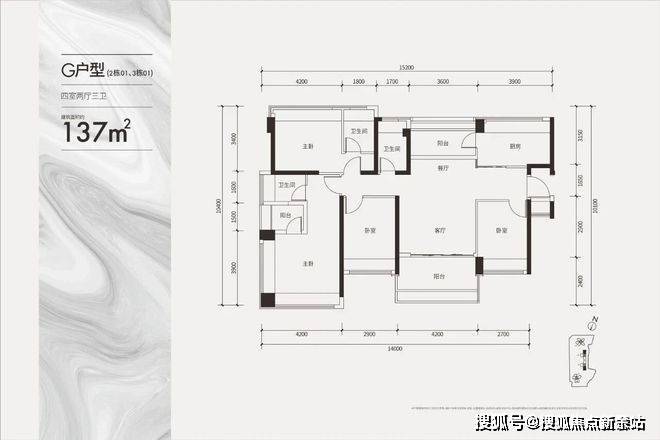 约137㎡大4房3卫,双套间设计!