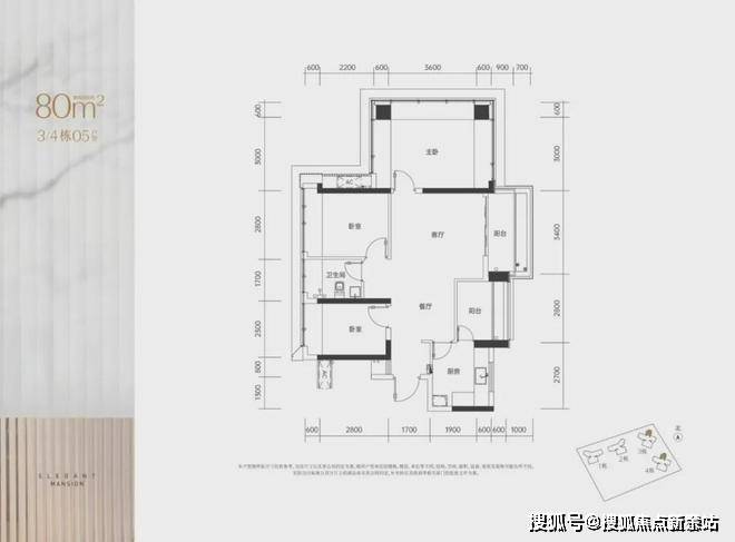 (2)80㎡竖厅户型:客厅4米开间,LDKB一体化设计,主卧15.8㎡,次卧9.07㎡,赠送面积后得房率约100%。