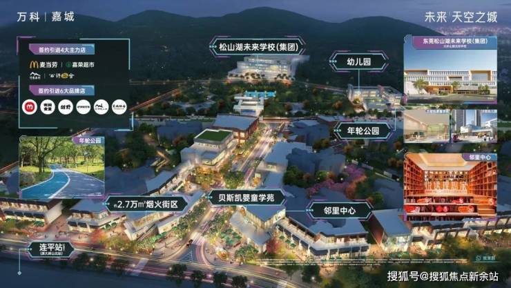 据悉,未来天空之城约2.7万平的烟火街区荟萃众多知名商家品牌,麦当劳得来速、嘉荣超市、公诗茶舍已正式签约,将在交付后陆续开业。