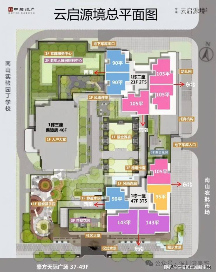 项目土地来源于润亚奕拓厂房旧改。小区占地面积仅9006.52平米,共 3 栋住宅楼,其中2栋21-47层商品房住宅、1 栋 46层保障房。总户数708户,普通商品房298户,住宅90/95/105/143平三至四房户型,保障性住房410户。