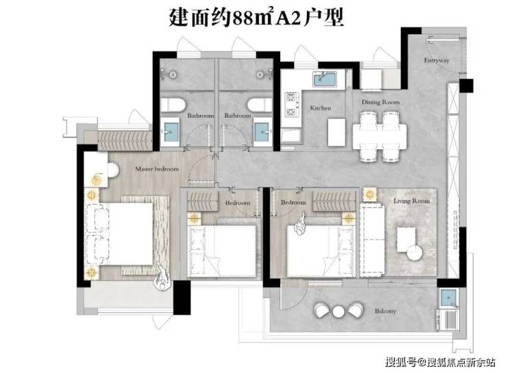 产品以主打刚需,有88㎡、98㎡、108㎡三至四房