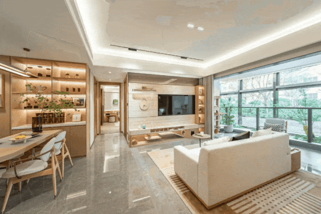 约5.8米大宽厅,连接山景大阳台,引美景入室,如同享受大平层般的空间体验。