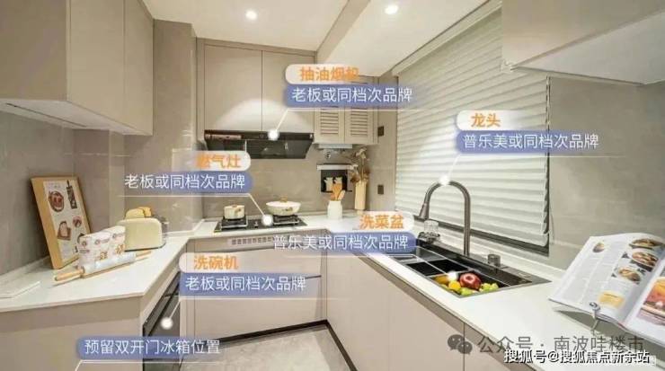 比如厨房配备老板或同等品牌抽油烟机、燃气灶、洗碗机、热水器四件套,生活更便利。