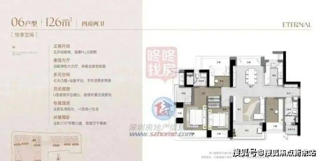 譬如04户型/06户型建面约123/126㎡四房,整体对流,主卧曲面采光,通透。