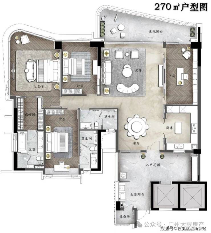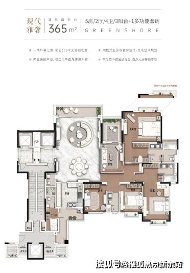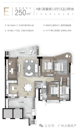 【A户型】王牌户型 270㎡环幕江景四房,约9米超大邮轮式阳台,一线望江无遮挡,专梯专户,墅级空中双花园,约28㎡超大私家庭院,多功能空间,约42㎡超大主卧空间,270°环幕江景,阔绰双主套房设计