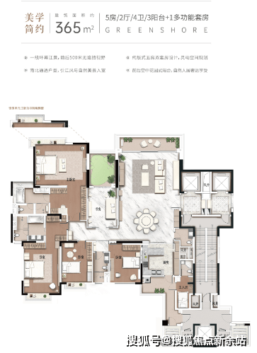 ●中轴城市江景叠墅:广州中轴之上南向一线望江叠墅,占据广州第二个中轴岛的地段资源及不可复制的自然景观资源。
