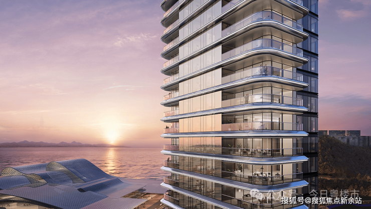 在建筑单体设计上,通过高达12米的架空层,确保首层住户即位于约20米的观海高度,实现“户户观海”。单侧布局核心筒的布局方式也最大限度地拓宽了住户的景观界面。地标塔楼高度达250米,住宅塔楼则在161米至192米之间高低错落,共同勾勒出和谐灵动的城市轮廓。