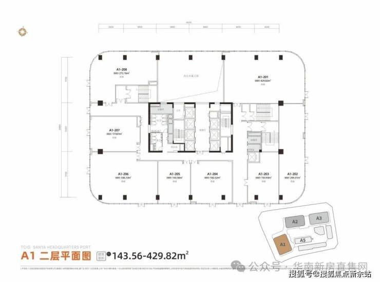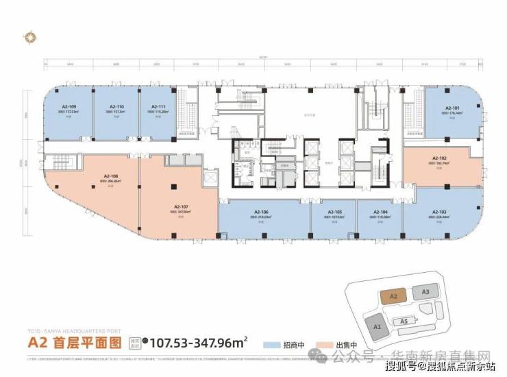 当前北区建面约328-348㎡ 5A办公空间、105-429㎡ 中央商务金铺,现房在售、同步招商