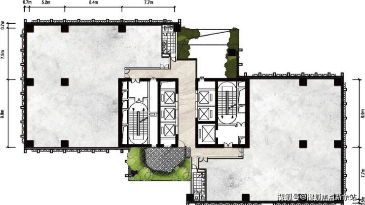 💡【写字楼层高】:标准层高(6-32层)4.5米,3-4层9米