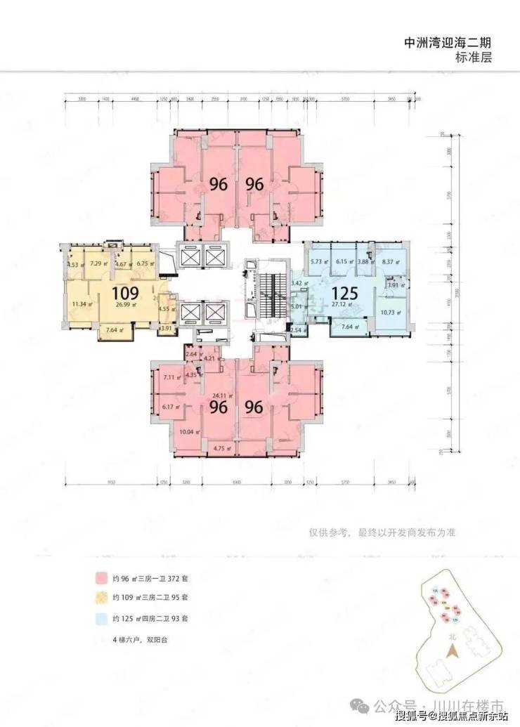 【户型面积】约96-109-125㎡中心3-4房