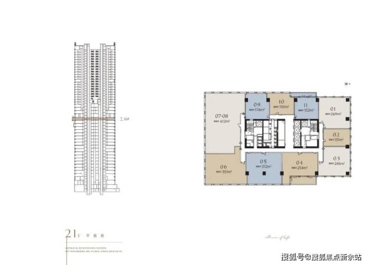 楼层总高:东塔,43F,206米,西塔,47F,205米 单层3至25层4.5米;26至47层3.6米