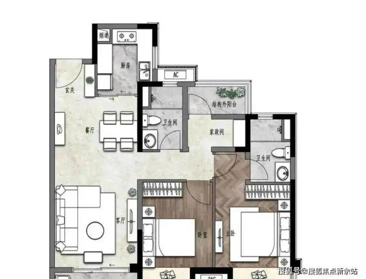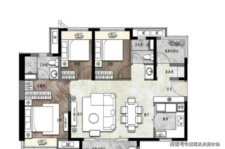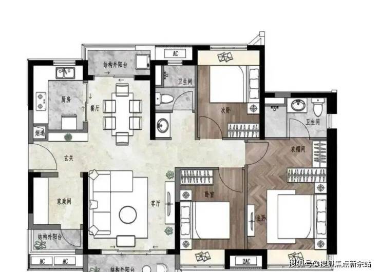 建面约100㎡ 三房两厅两卫