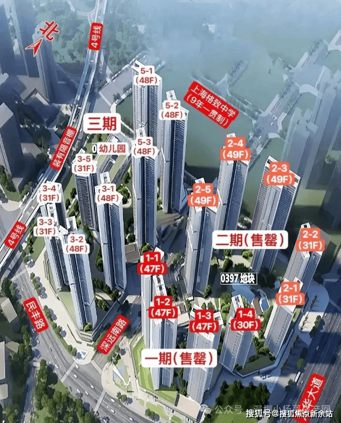 三期占地3.69万㎡,建面约21.9万㎡,容积率4.24,绿化率40%,总规划1272户,停车位1403个。 3栋1-2单元总高48层,3-5单元高31层,4栋为18班制幼儿园,5栋1-3单元总高48层。
