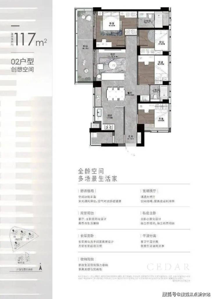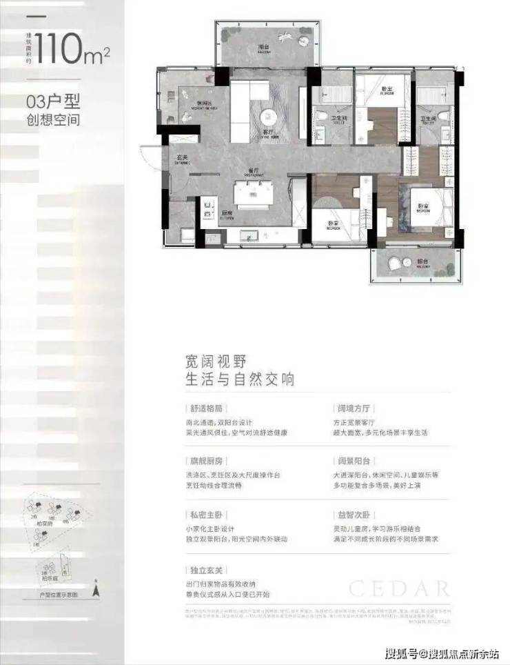 定制奢阔生活,创新一体化奢阔空间、双采光面景观巨厅、大尺度纵深长阳台等,定制入户铸铝门、厨房专用空调、智慧家控制面板、全屋吊顶无主灯设计等,大容量玄关柜、实用多功能橱柜系统、精细卫浴系统。