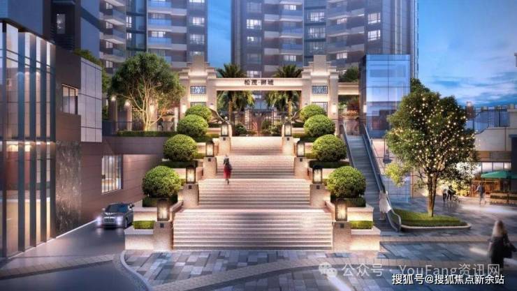 园林布局和谐流畅,地势错落有致,移步异景,创造专享生活逸趣。主入口采用高台府邸的围合设计,营造舒心从容的归家仪式感。