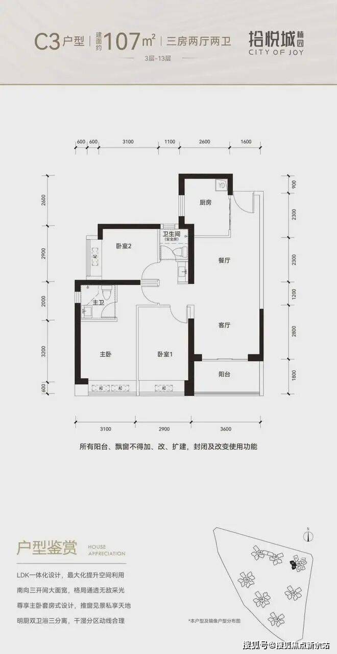 107平~三开间朝南设计,最大限度扩大室内采光面;创新户型布局,既保证了主卧的阔绰空间,也有pro max次卧,结构灵活百变,满足家庭不同阶段的不同需求;整体空间尺度大气舒适,为每位家庭成员提供了更多生活可能性。