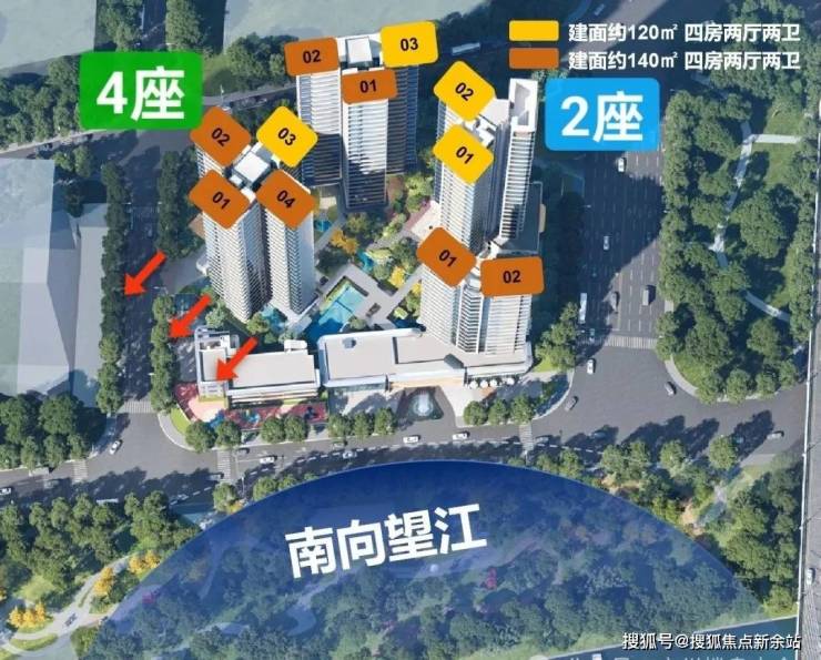 产品:项目在售2、3、4栋,1栋已售罄,3、4栋高层都是能望到江的,总层高25层,两梯三户设计,只有两个面积段,120㎡和140㎡,户型做得不错,在景观展现上用了功,极大程度去放大观江面,比方说超宽阳台、L型主卧转角飘窗、客厅预留观景飘窗等等,主打改善户型,2025年9月整体交房。