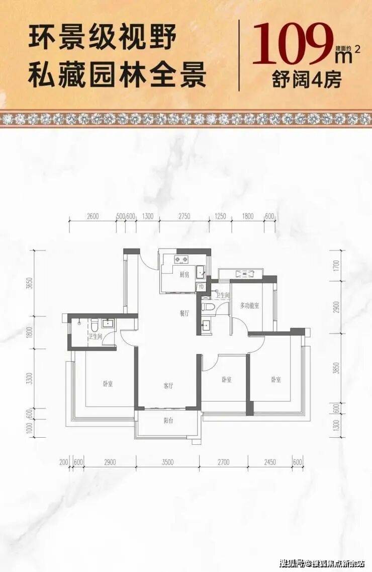 👑约109㎡双龙抱珠四房,折后单价约5.1-5.28万/㎡,折后总价约557-576万