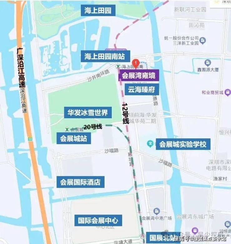 招商雍境二期位于沙井街道展城路与南环路交汇处,紧邻地铁12号线海上田园南站。