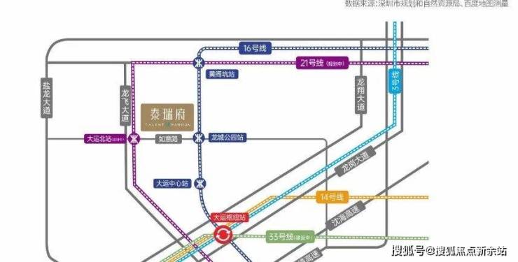 地铁:紧邻地铁16号线龙城公园站(约600米),2站大运枢纽。距21号线大运北站(建设中,约50米),10站南山;33号线(建设中)/深大城际(建设中)4站深圳北枢纽、5站西丽、8站前海;
