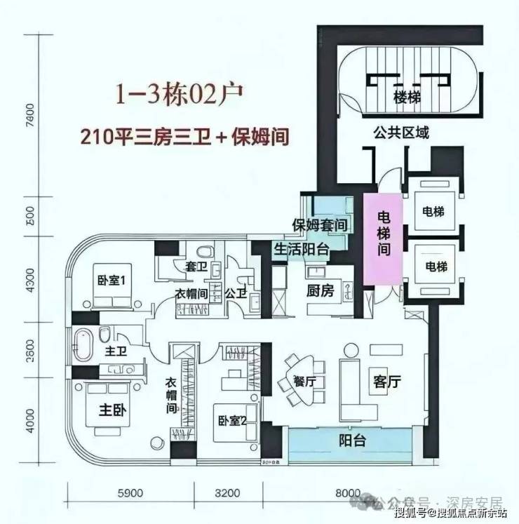 210㎡三房三卫+家政套间
