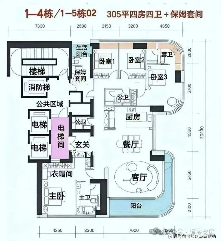 305㎡四房四卫+家政套间