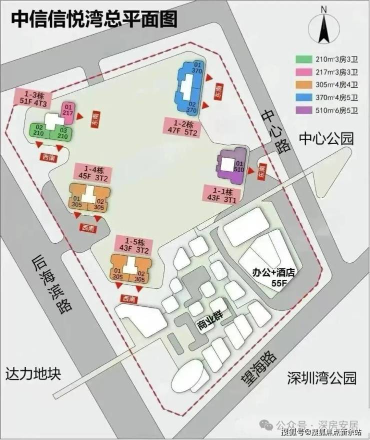 5. 楼层与梯户比:总层高43 - 51F,梯户比有3T1、3T2、5T2、4T3。
