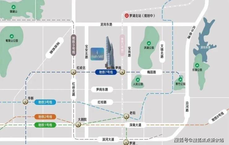 无缝接驳地铁7号线笋岗站D出口(已开通),地铁17号线笋岗站正在规划中,邻9号线红岭北站。