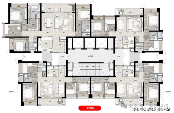 115-118㎡4房2卫:入户玄关处狭长,可做鞋帽收纳;U型厨房操作动线流畅;双龙抱珠的户型,适合和父母居住的家庭,平时休息作息不打扰;主卧带卫生间,父母房和相邻次卧离客卫相隔客厅,不太方便;餐客厅一体,阳台宽敞;厨房和公卫有遮挡。