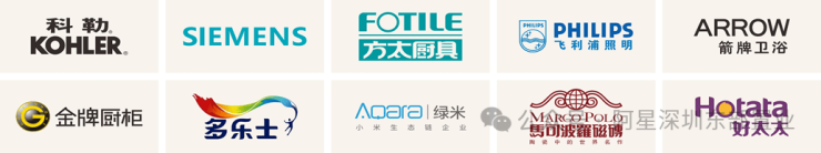 品牌家居: 方太厨具、科勒卫浴、金牌橱柜、飞利浦灯具、西门子插座、箭牌浴室镜柜 鞋纳柜等;
