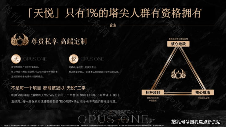 “天悦”属于“TOP”系,是保利超越以往全系列产品线的收藏级作品,保利在全国布局了超900个项目,仅1%塔尖人群可拥有“天悦”。
