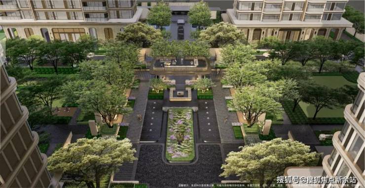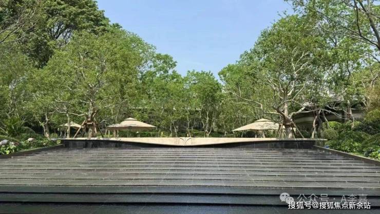 项目虽不直接临江,却巧妙借助周边生态资源,打造出“内外双园”的生态系统。西侧配建约2万方市政公园,草木葱茏、路径幽深,已部分实景呈现,隐逸感十足;社区内部则规划约330米中轴园林,以“三进五院”的中式礼序贯穿南北,绿化率约35%,形成一道天然的视觉与声音屏障。