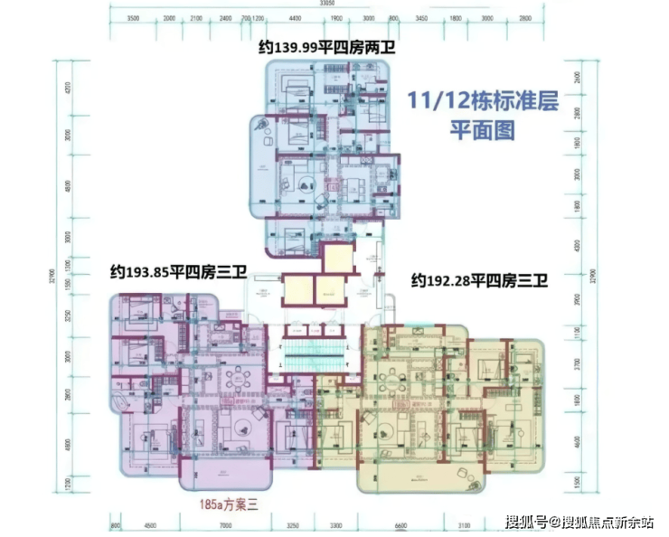 入门户型,面向首次改善型客户。四房设计满足多代同堂或居家办公需求,纯南向确保全屋采光。