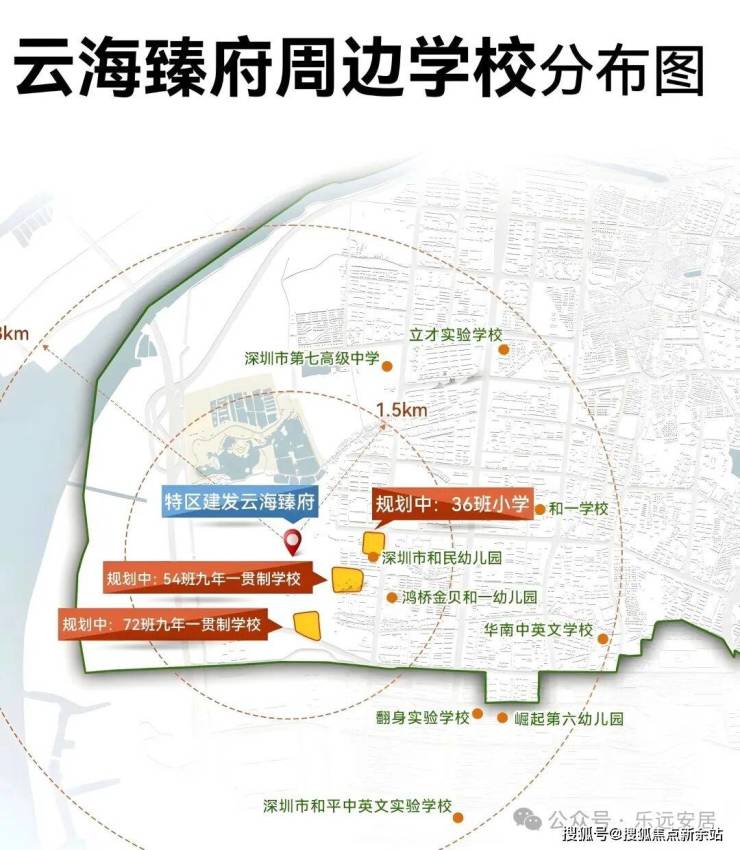 家楼下的18班幼儿园(在建)、周边还有深圳沙井街道会展中心学校(规划)、一所36班制小学和一所54班九年一贯制学校。