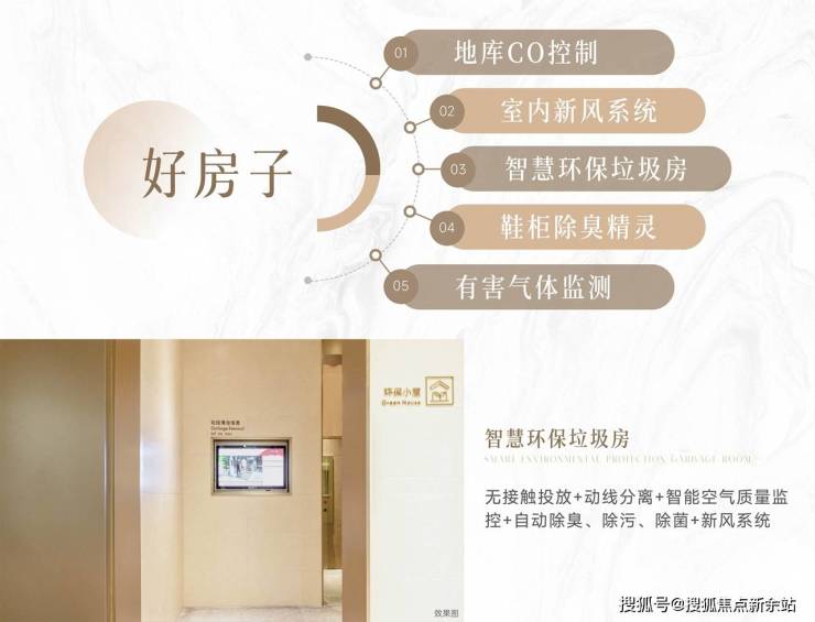 新风系统、智慧垃圾房等配置,从户内到小区,全方位净化监测+清新除菌+绿色投放,无忧呼吸。