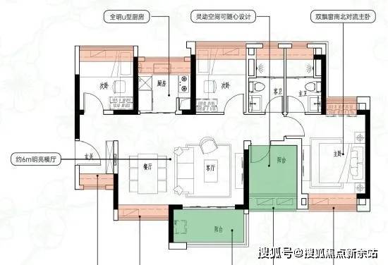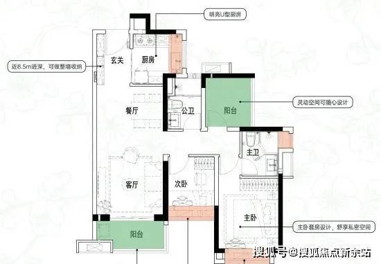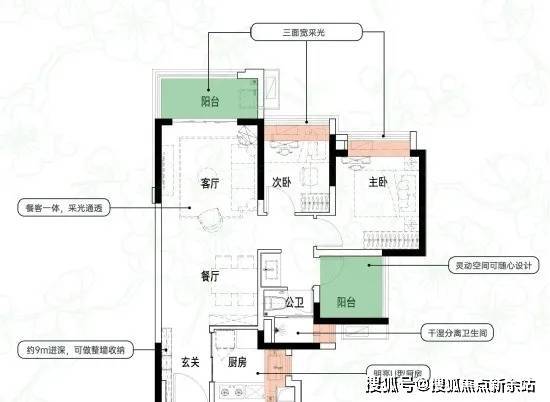 建面约84㎡3空间2厅2卫--得房率约93.5%