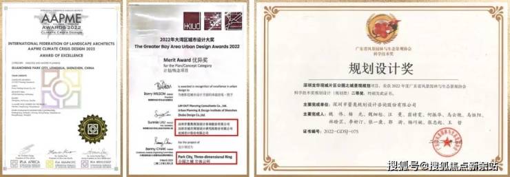 国内外选评载誉无数,区域国际铸就战略高地。问鼎国际ILFA顶级荣誉以及荣获2022年大湾区城市设计大奖、广东省风景园林与生态景观协会科学技术奖规划设计(规划类)奖项。