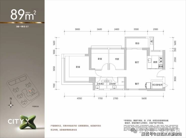 王炸户型 约89㎡3+1房两厅两卫